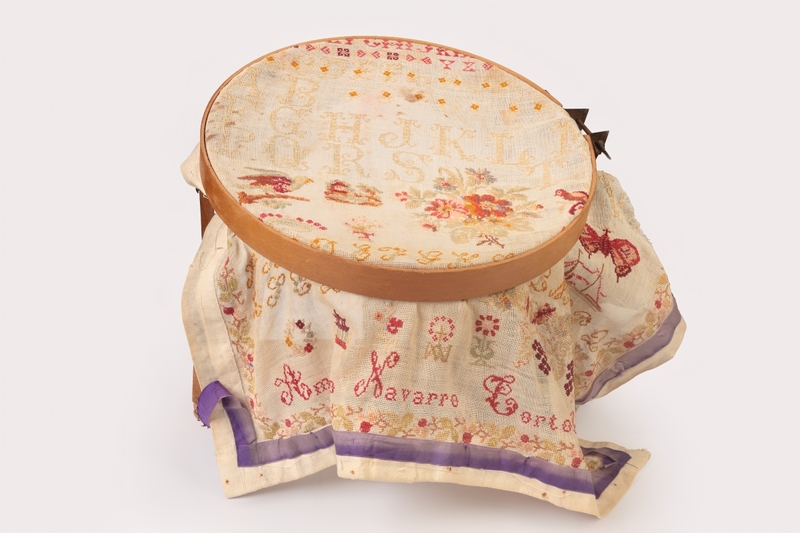 En la parte inferior de la tela, encontramos el nombre, bordado en hilo rojo, 'Amparo Navarro Tortosa, Año 1901'.