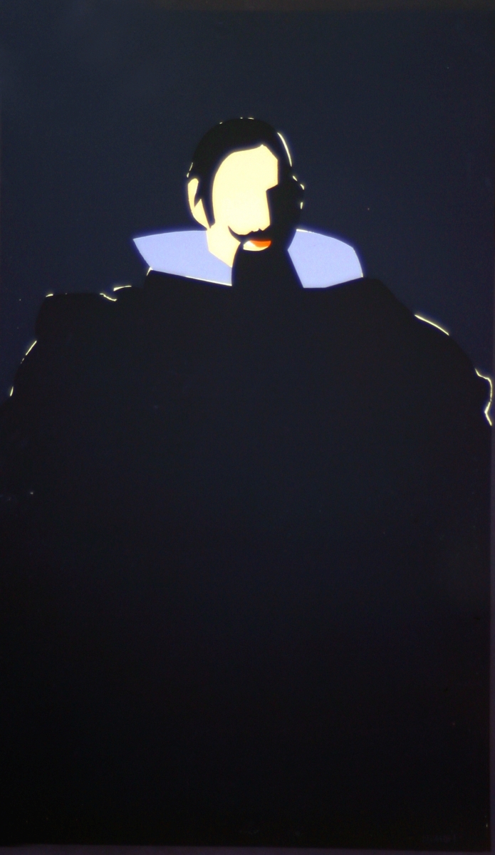 Obra en la que el artista toma como referente el retrato del Conde Duque de Olivares realizado por Velázquez en 1624. Predomina el color negro a excepción del uso del gris en la gorguera y el color carne en el rostro facetado que combina con el negro. La figuración de Velázquez alcanza aquí nuevos horizontes gracias a la personal imprimación de Valdés, siendo un rasgo típico de su obra la reutilización de personajes clave en la historia del arte.
