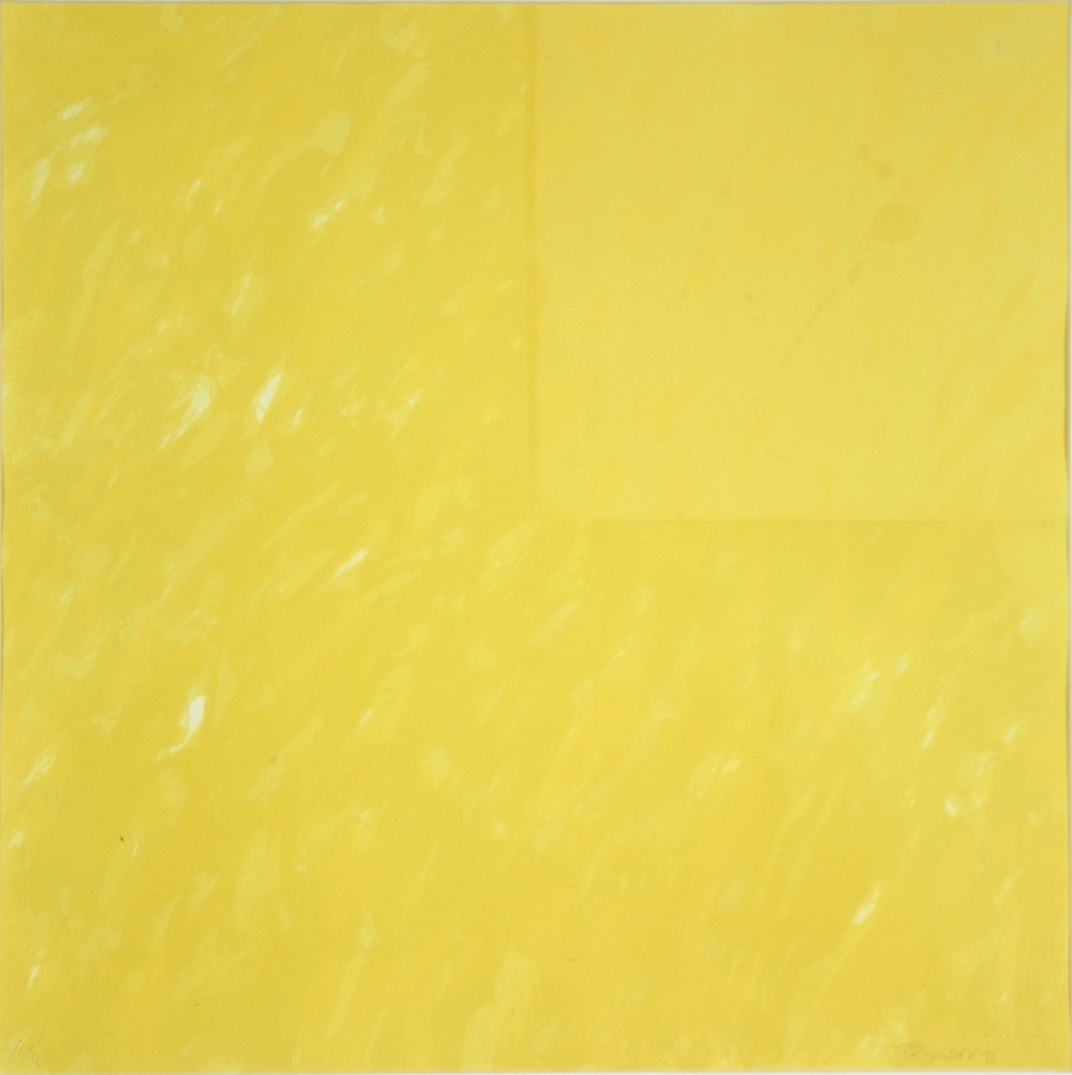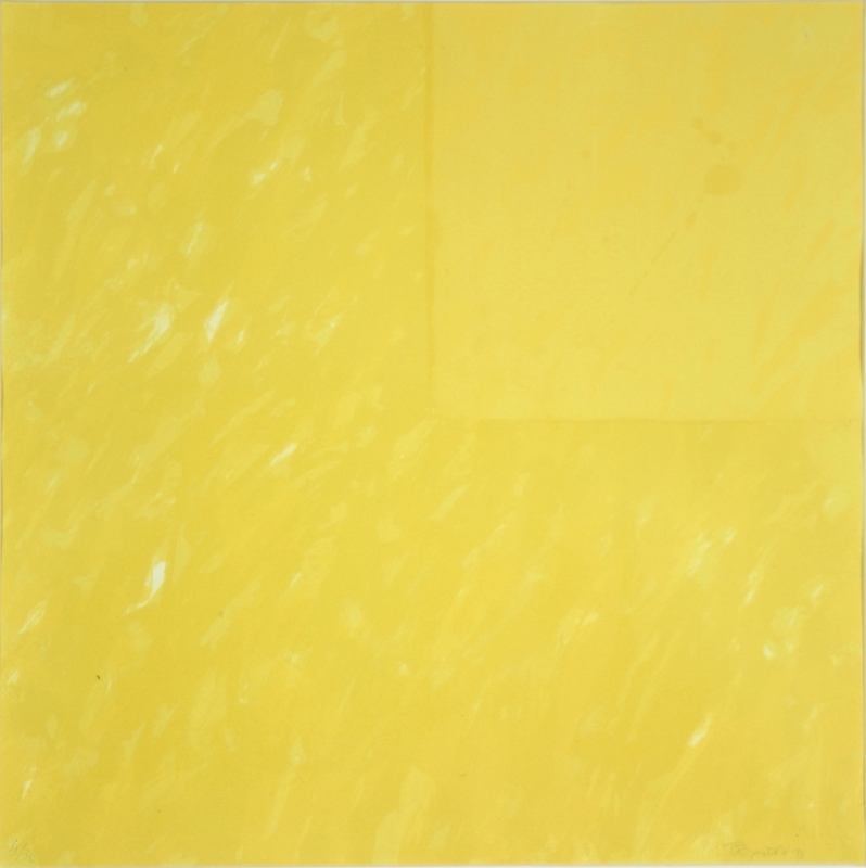 Composición abstracta marcada por el color, la solidez, el equilibrio y la geometría en la que se alude a la noción de límite por medio del cuadrado que distribuye el espacio.