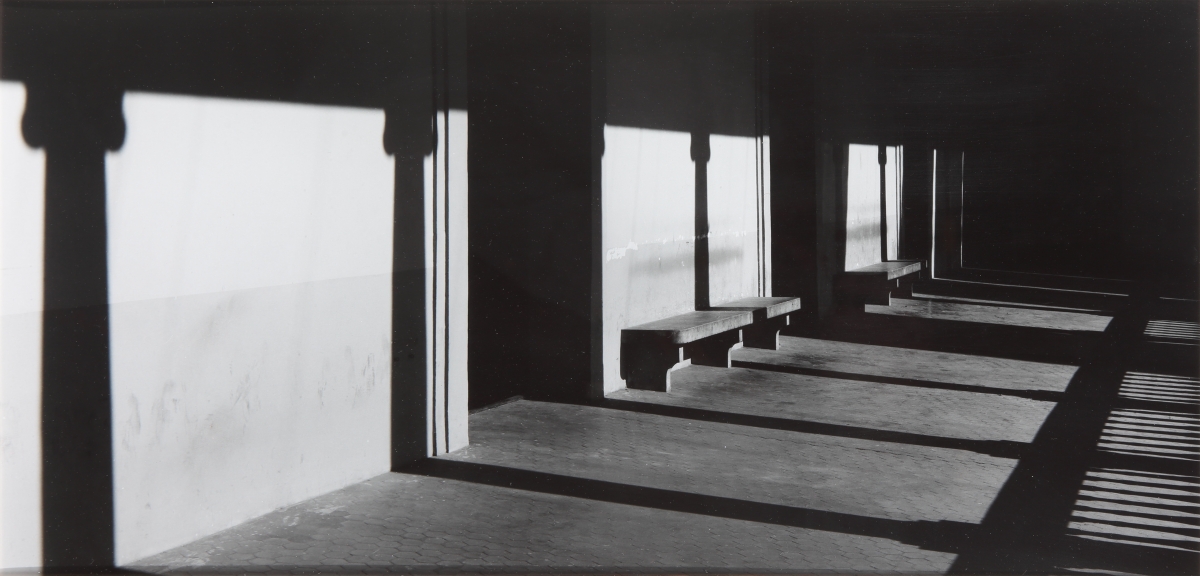 Esta fotografía formó parte de la exposición Esguards Distants. Estudi General de la Universitat de València, celebrada en el IVAM "Centre Julio González" en 1999. Una exposición colectiva, inscrita en el marco de la conmemoración del quinto centenario de la Universitat de València, en la que se recogieron ocho formas de ver la institución y sus espacios a través de las fotografías de ocho fotógrafos de reconocido prestigio internacional. Imágenes de paisajes, de arquitecturas, de interiores y de retratos en las que se combina, de manera magistral, la luz y la materia. Testimonios de un lugar y una época con el sello propio de la fotografía de autor.