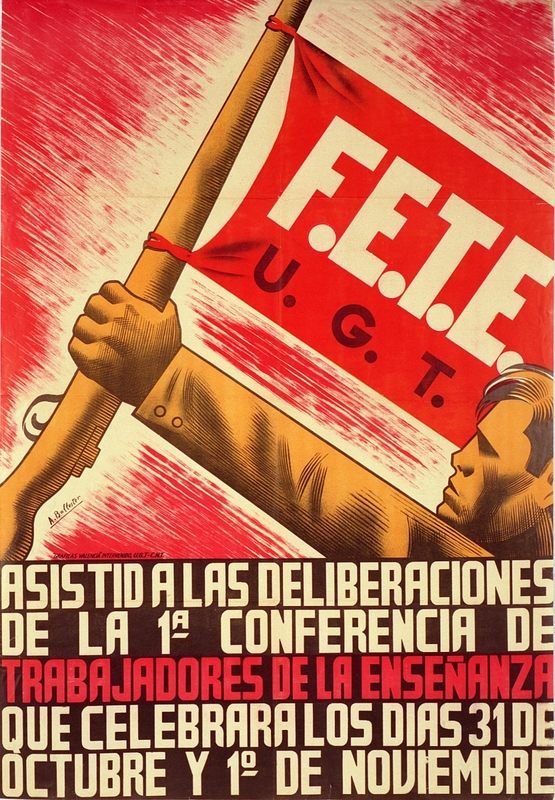 Cartel de guerra de la FETE (Federación Española de Trabajadores de la Enseñanza)- UGT. 1ª Conferencia de Trabajadores de la Enseñanza