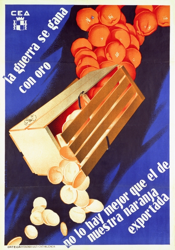 Cartel de guerra del Consejo Exportador de Agrios (CEA) La guerra se gana con oro. No lo hay mejor que el de nuestra naranja exportada
