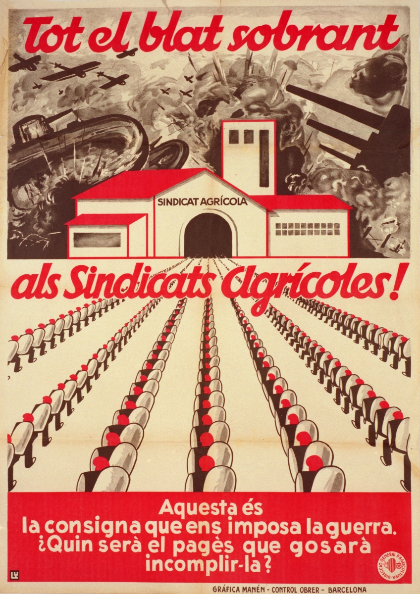 Cartel de guerra de la Direcció General d'Agricultura Tot el blat sobrant als Sindicats Agrícoles!
