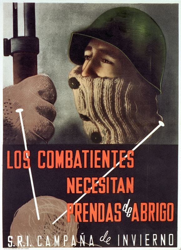 Cartel de guerra del Socorro Rojo Internacional (SRI) Los combatientes necesitan prendas de abrigo