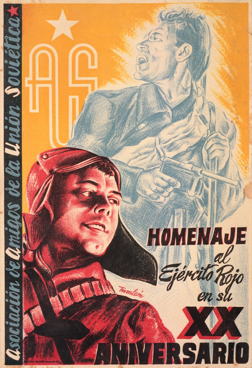 Cartel de guerra de la Asociación de Amigos de la Unión Soviética (AUS) Homenaje al Ejército Rojo en su XX Aniversario
