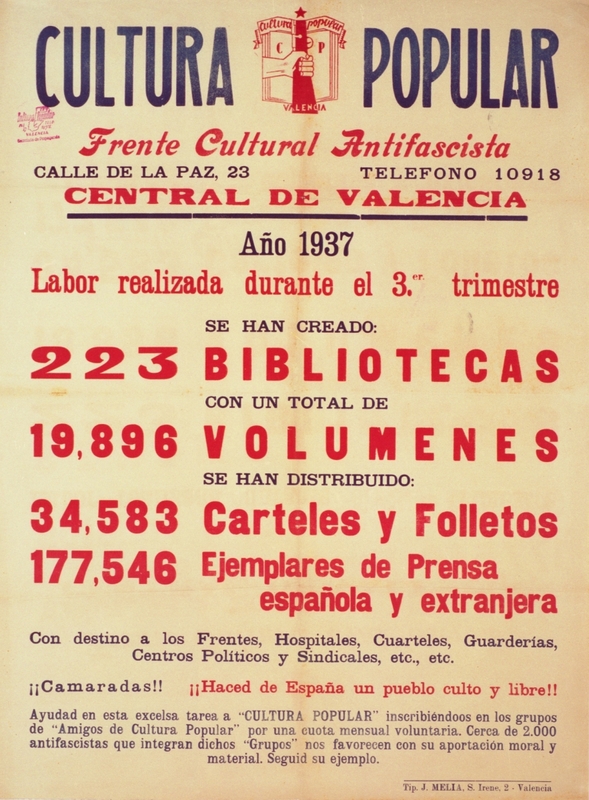 Cartel de guerra de Cultura Popular (CP) Frente Cultural Antifascista. Central de Valencia