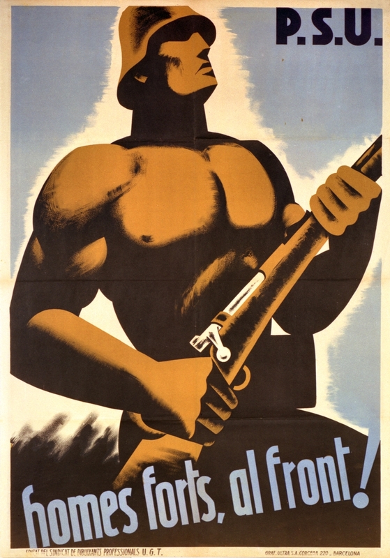 Cartel de guerra del Sindicat de Dibuixants Professionals. UGT- PSU. Homes forts, al front!