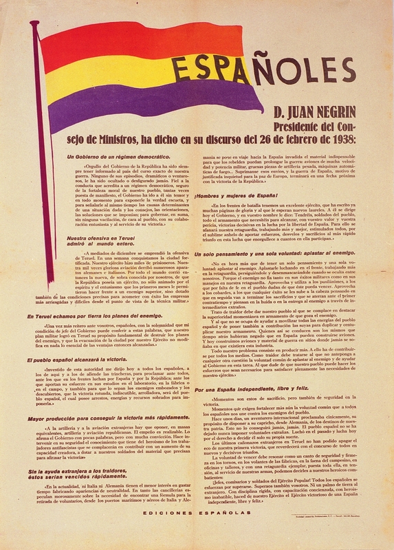 Españoles. D. Juan Negrín Presidente del Consejo de Ministros, ha dicho en su discurso del 26 de febrero de 1938…
