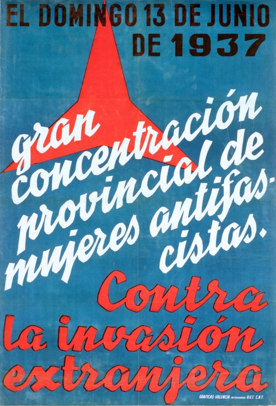Cartel de guerra de Mujeres Antifascistas El domingo 13 de junio de 1937 gran concentración provincial de mujeres antifascistas. Contra la invasión extranjera
