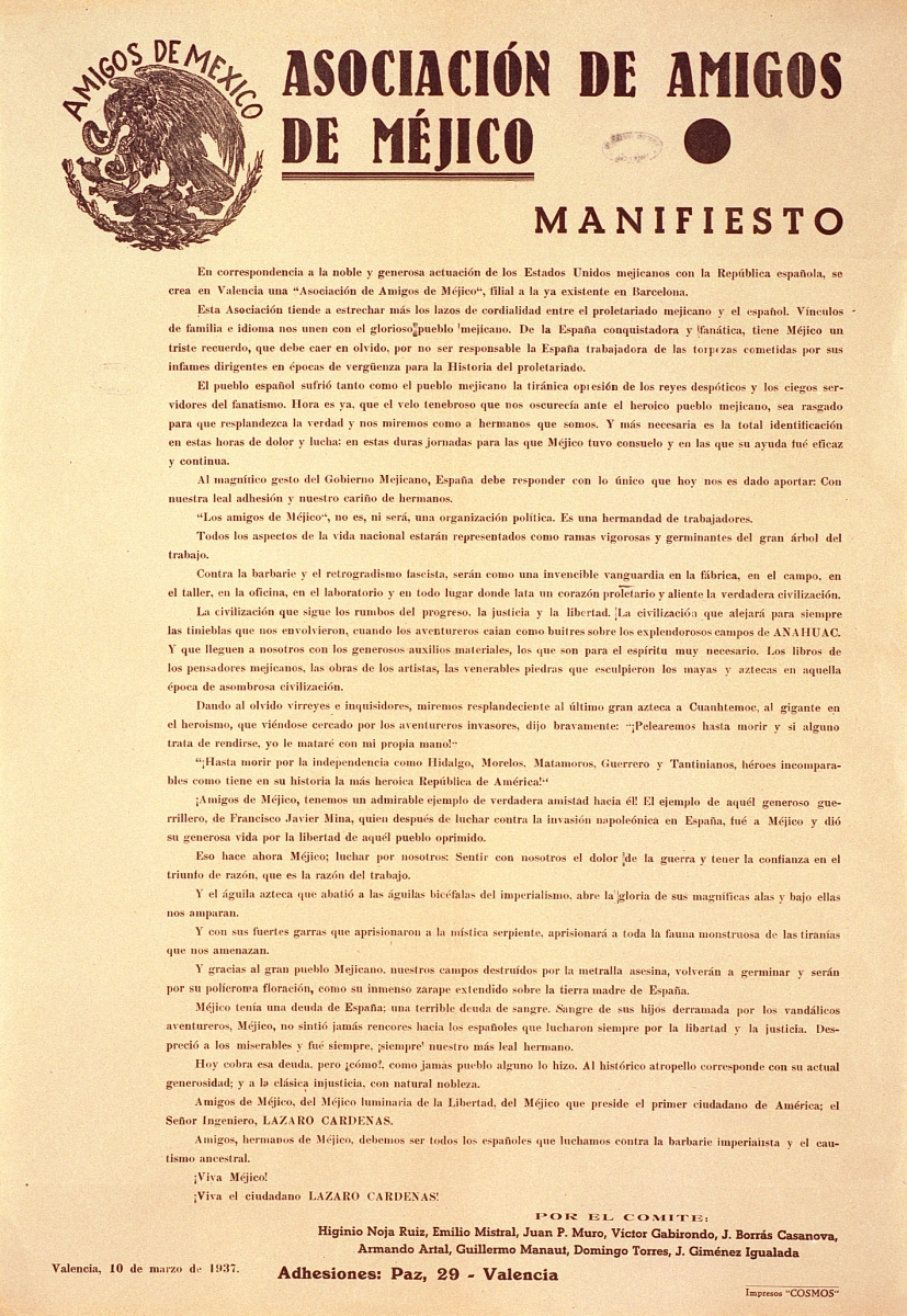 Cartel de guerra de la Asociación de Amigos de Méjico Manifiesto