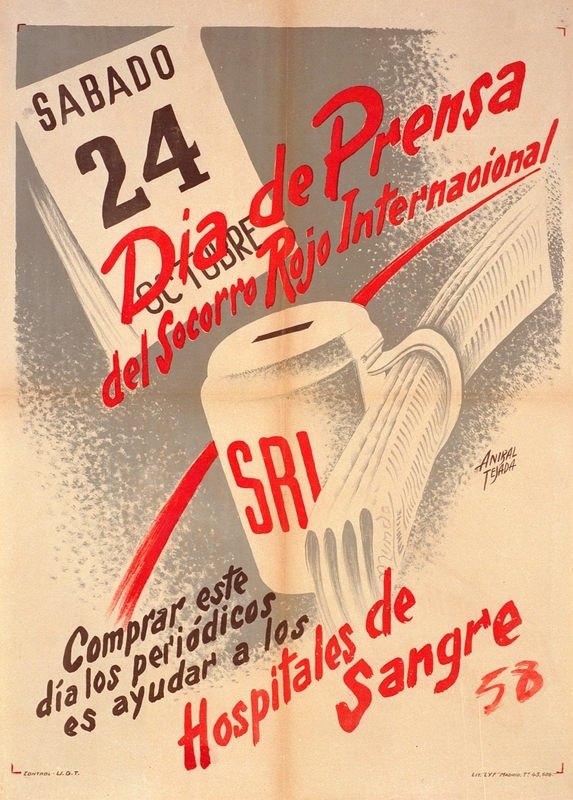 Cartel de guerra del Socorro Rojo Internacional (SRI) Sábado 24 octubre. Día de Prensa del Socorro Rojo Internacional