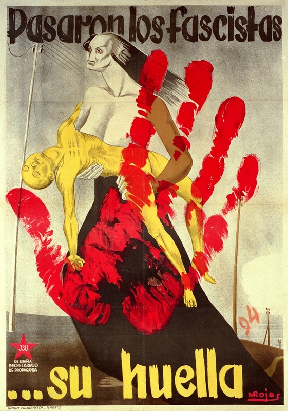 Cartel de guerra de la Juventud Socialista Unificada (JSU) de España Pasaron los fascistas… su huella