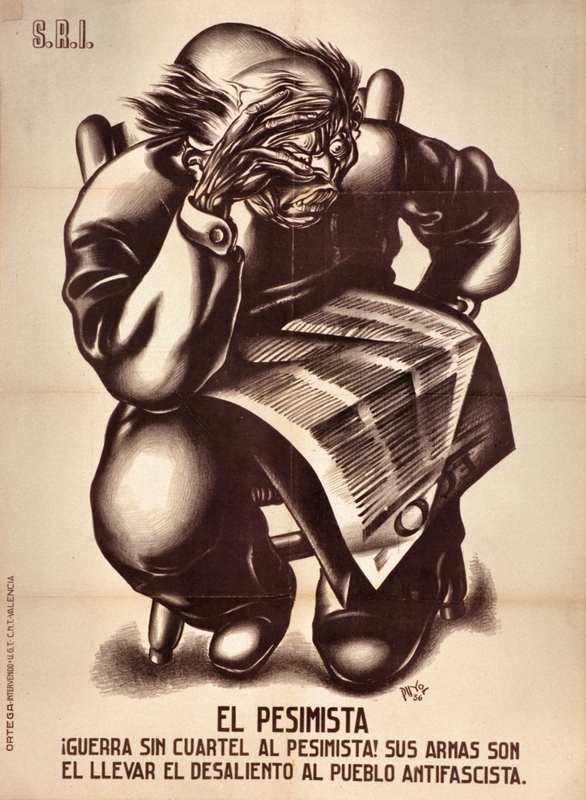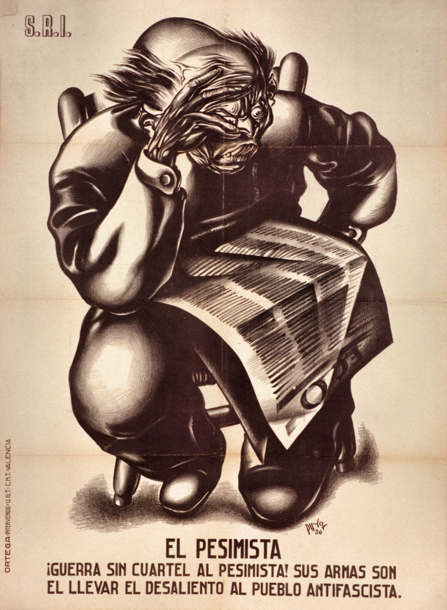 Cartel de guerra del Socorro Rojo Internacional (SRI) El Pesimista. ¡Guerra sin cuartel al Pesimista!