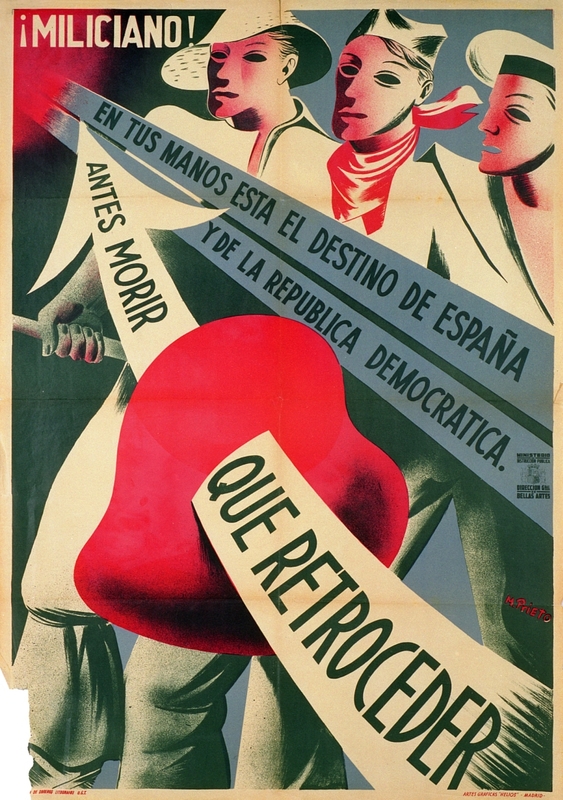 Cartel de guerra del Ministerio de Instrucción Pública. Dirección General de Bellas Artes. ¡Miliciano! En tus manos está el destino de España…
