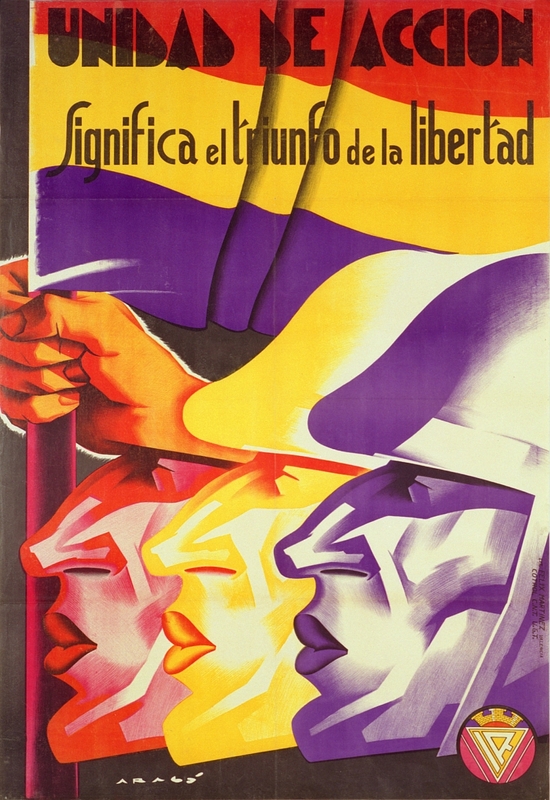 Cartel de guerra de Izquierda Republicana (IR) Unidad de acción. Significa el triunfo de la libertad