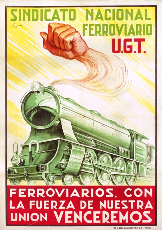 Cartel de guerra del Sindicato Nacional Ferroviario. UGT.