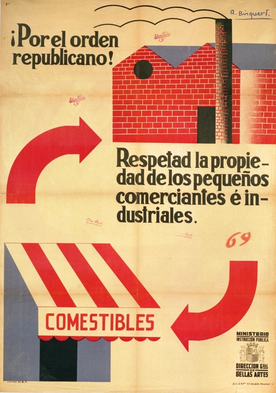 Cartel de guerra del Ministerio de Instrucción Pública. Dirección General de Bellas Artes ¡Por el orden republicano! Respetad la propiedad…