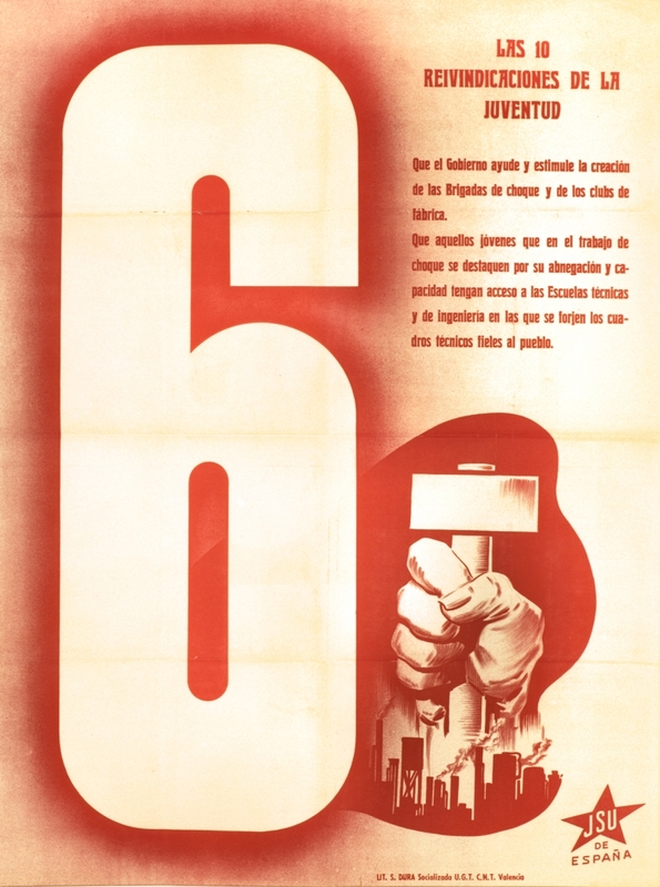 Cartel de guerra de la Juventud Socialista Unificada (JSU) de España Las 10 reivindicaciones de la juventud (6)