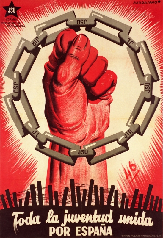 Cartel de guerra de la Juventud Socialista Unificada (JSU) de España Toda la juventud unida por España