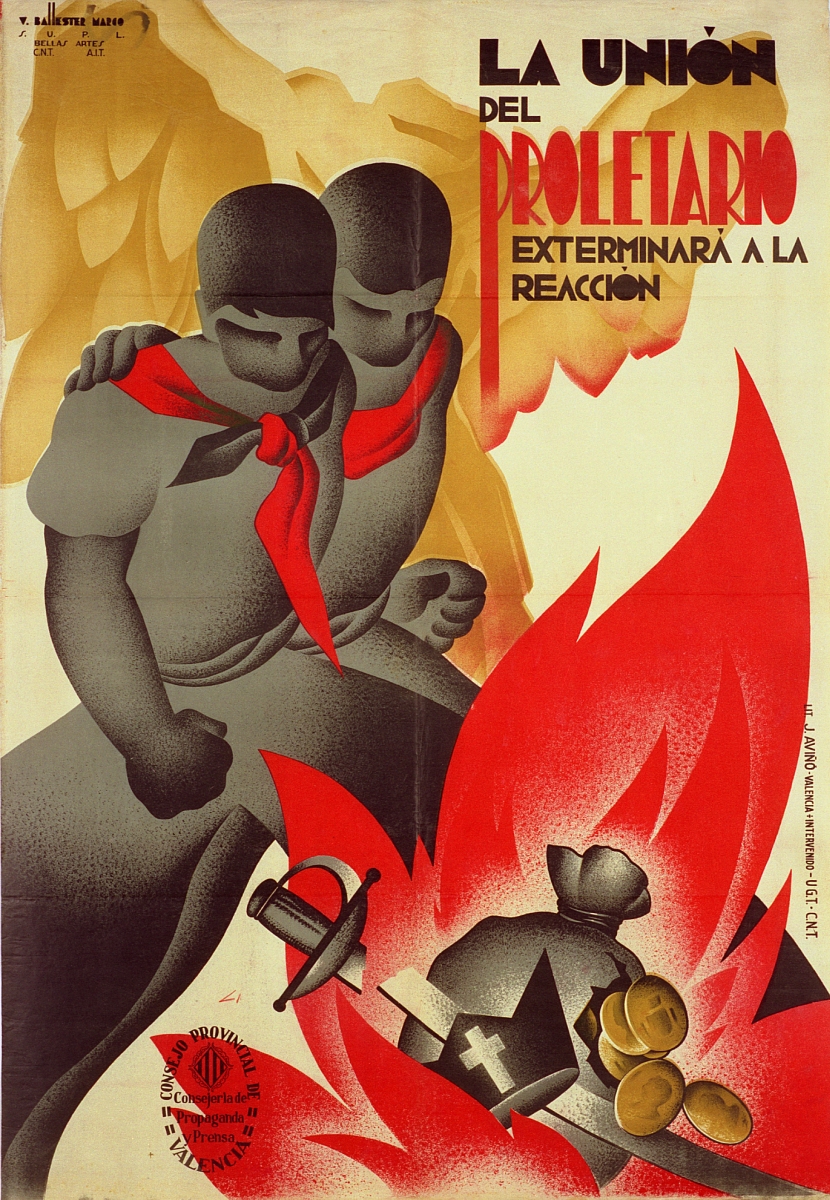 Cartel de guerra del Consejo Provincial de Valencia. Consejería de Propaganda y Prensa La unión del proletariado exterminará a la reacción