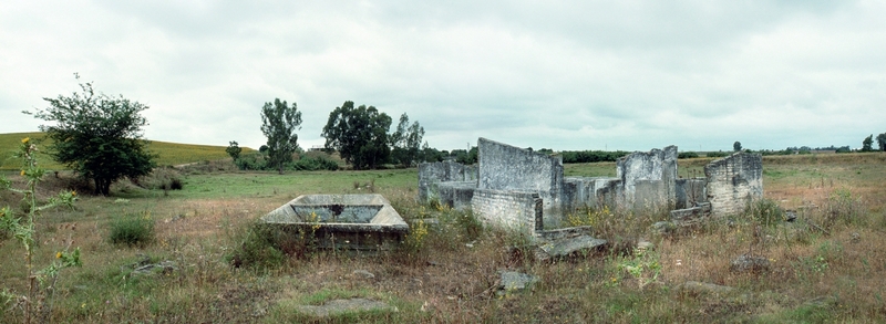 Fotografía de Los Merinales de Dos Hermanas, campo de concentración de la dictadura franquista en el que miles de presos políticos cumplieron condena de trabajos forzados. Hay aquí una relación entre memoria y espacio en el que la imagen evoca / invoca otro tiempo de un pasado olvidado. La ruina y el espectro no hablan de lo que se fue, sino de lo que no ha podido irse y avisa de lo que quizás está por venir. A través del ambiente captado mediante el encuadre y las gamas cromáticas, se refleja también el silencio, recreándose "atmósferas donde laten las voces silenciadas que invitan a volver a ver, escuchar, a hablar y a repensar la historia."
