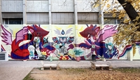 Pintura mural, diseñada por la ilustradora Isabel Gálvez y pintada por Martín Forés, que conmemora las observaciones que el astrónomo valenciano Jerónimo Muñoz realizó de la supernova SN 1572, también conocida como supernova de Tycho.