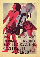 Cartel de guerra del Socorro Rojo Internacional (SRI) Las culpas de los padres las pagan sus inocentes hijos. ¡¡Todos a una contra el venéreo!!