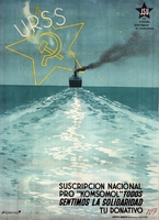 Cartel de guerra de la Juventud Socialista Unificada (JSU) de España U.R.S.S. Suscripción Nacional pro "Komsomol"