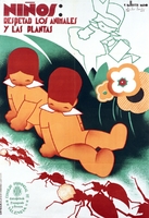 Cartel de guerra del Consejo Provincial de Valencia. Consejería de Propaganda y Prensa Niños: respetad los animales y las plantas