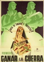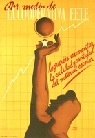Cartel de guerra de la FETE- UGT. Por medio de la cooperativa FETE lograréis aumentar la calidad y cantidad del material escolar