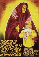 Cartel de guerra del Consejo Provincial de Valencia. Consejería de Propaganda y Prensa Cuidar de la infancia y de la vejez, es obra revolucionaria