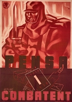 Cartel de guerra de la Unión General de Trabajadores (UGT) Pensa en el combatent