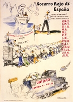 Cartel de guerra de la Subsecretaria de Propaganda España lucha por su independencia, por la paz y la solidaridad entre todos los pueblos