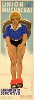 Cartel de guerra del Ministerio de Instrucción Pública y Sanidad. Unión de muchachas. Campamento deportivo