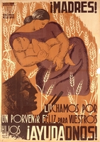 Cartel de guerra del Ministerio de Instrucción Pública. Dirección General de Bellas Artes. ¡Madres! Luchamos por un porvenir feliz para vuestros hijos