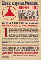 Cartel de guerra del Comité Provincial de Mujeres Antifascistas. Secretaría de Propaganda ¡Mujeres todas! ¡En pie por la independencia de nuestra patria!