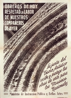 Cartel de guerra del Ministerio de Instrucción Pública. Dirección General de Bellas Artes Obreros de hoy respetad la labor de nuestros compañeros de ayer