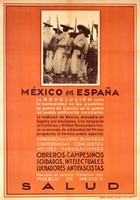 Cartel de guerra de los Escritores y Artistas Revolucionarios mexicanos México en España. La revolución crea la hermandad de los pueblos