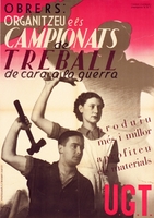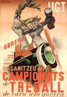 Cartel de guerra de la UGT. Comissió d'agitació i propaganda Obrers: organitzeu els campionats de treball de cara a la guerra