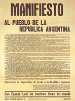 Cartel de guerra de la Federación de Organismos de Ayuda a la República Española Manifiesto al pueblo de la República Argentina