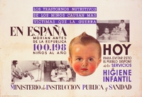 Cartel de guerra del Ministerio de Instrucción Pública y Sanidad Los trastornos nutritivos de los niños causan más víctimas que la guerra