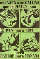 Cartel de guerra del Ministerio de Instrucción Pública. Dirección General de Bellas Artes Una vaca o una gallina que se maten son pan para hoy…