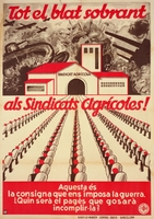 Cartel de guerra de la Direcció General d'Agricultura Tot el blat sobrant als Sindicats Agrícoles!