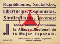 Cartel de guerra del Comité Provincial de Mujeres Antifascistas. Secretaría de Propaganda Republicanas, Socialistas, Libertarias, Comunistas, Sindicalistas…