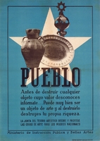 Cartel de guerra. Ministerio de Instrucción Pública. Dirección General de Bellas Artes La Junta del Tesoro Artístico recibe y protege las obras de arte…