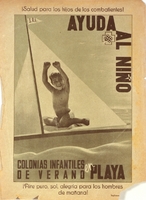 Cartel de guerra del Socorro Rojo Internacional (SRI) Ayuda al niño. Colonias infantiles de verano en playa
