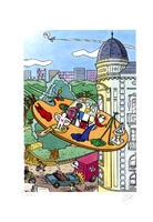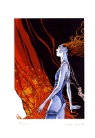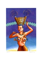 Pieza muy temprana en la producción artística de Pérez Contel. Representa de modo muy esquemático una sencilla composición consistente en dos jinetes, uno a lomos de su caballo con la espalda erguida y el otro en actitud de montar apoyando las manos en la grupa del animal y la rodilla izquierda flexionada. Se trata de figuras completamente despersonalizadas, arquetípicas, sin rasgos ni rostros, al igual que ocurre con los equinos que se nos muestran prácticamente estáticos. Son seres primordiales, indefinibles, sin detalle ni matiz. El paisaje es inexistente, las figuras gravitan en un espacio vacío en el que unas simples marcas rápidas con el lápiz en la parte inferior sirven para situarlas. El color, terroso y ocre, neutro y plano, sólo se complementa con el trazo del lápiz que a partir de líneas en puntos estratégicos contribuye a proporcionar pequeños toques de sombreado. -